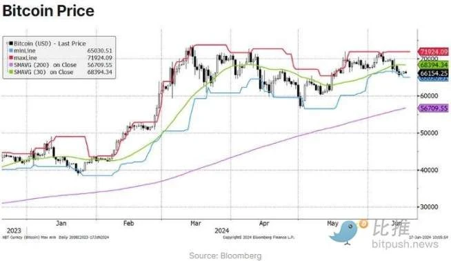 Morris 写道:「我不知道这种情况会持续多久,但这似乎是一个决定性的变化。这表明我们不应该对跌势的突破感到惊讶,关于减半将使比特币破新高的预言落空,尽管今年 ETF 的资金流入强劲,但价格仍不断触及 70, 000 美元以上的阻力位。今天,价格又回到了 30 日移动均线以下,趋势已降至 2/5 。然而,它仍处于长期上升趋势中。」