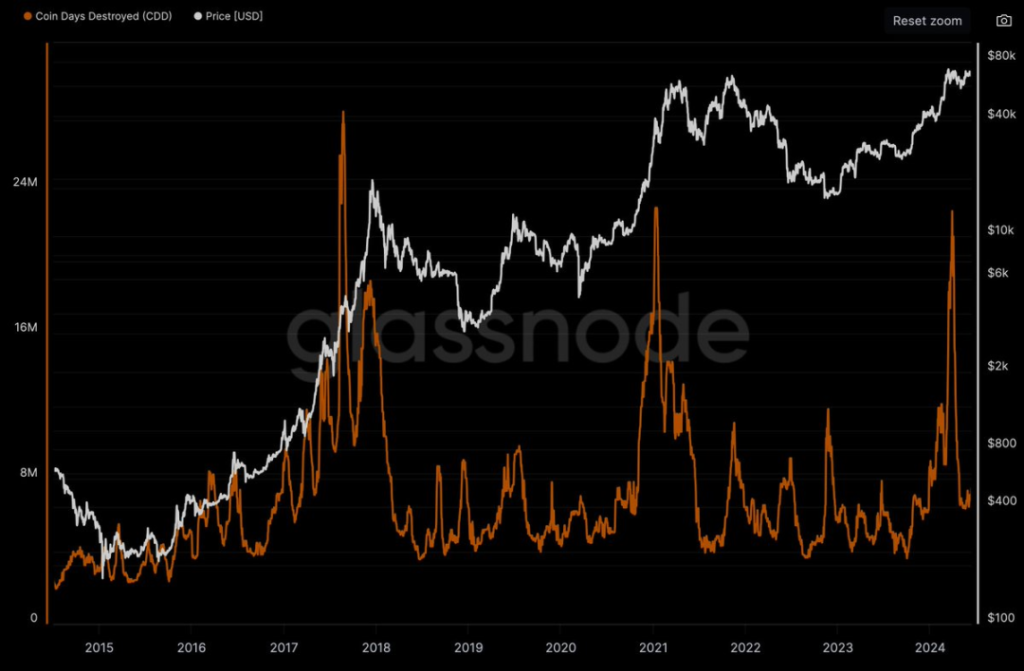 为了更直观地瞭解这一现象,我们可以参考下图:币龄 x 售出币的数量。这张图表揭示出 OG 在市场上的抛售行为以及其对市场走势的影响。