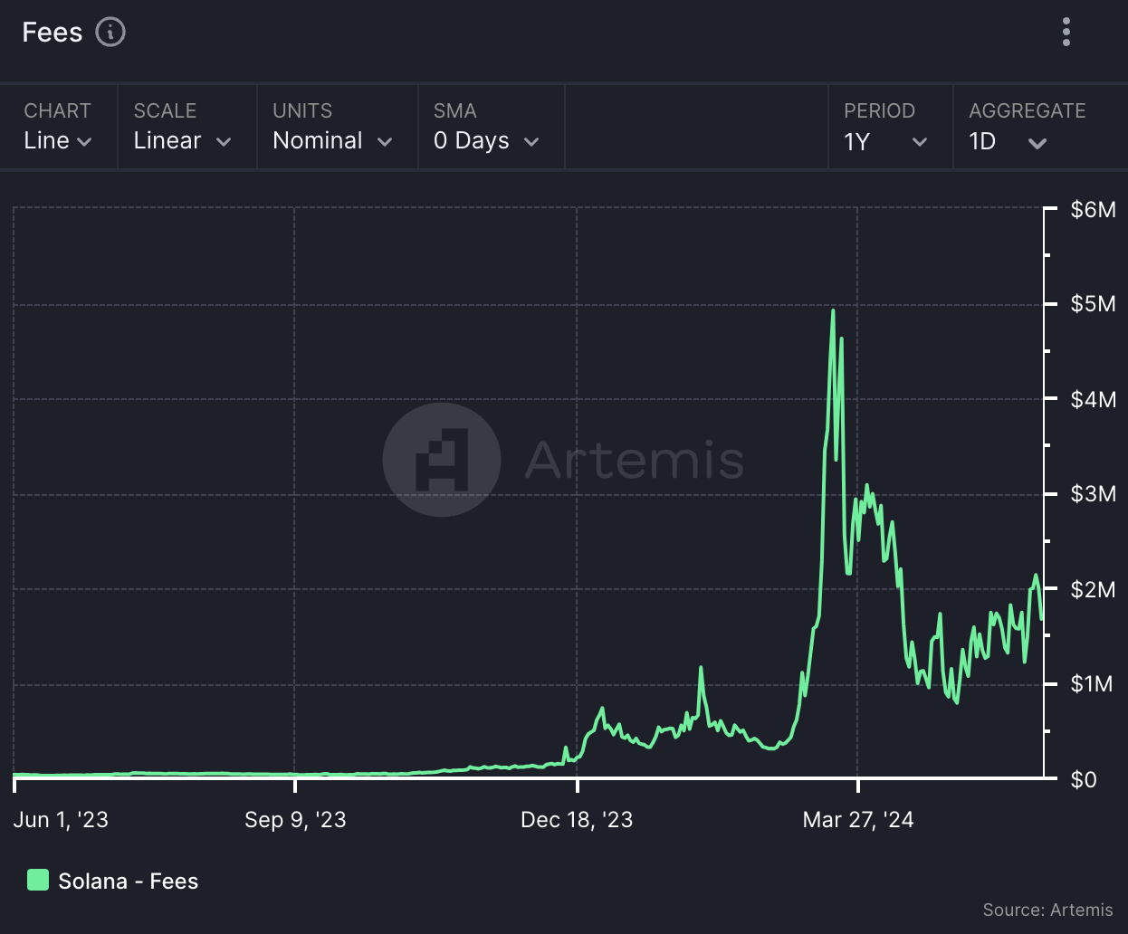 该网络的费用收入也开始了显著增长,这证明虽然,Solana 网络便宜,但费用收入将通过更高的用户活动/交易量来弥补。