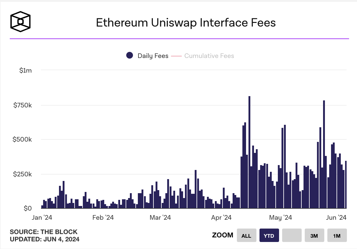 对于成功的协议的定义之一是可以在其基础上建立成功的业务。在链上交易所可以看到这一点,以 Uniswap Labs 的界面收入增长为例: