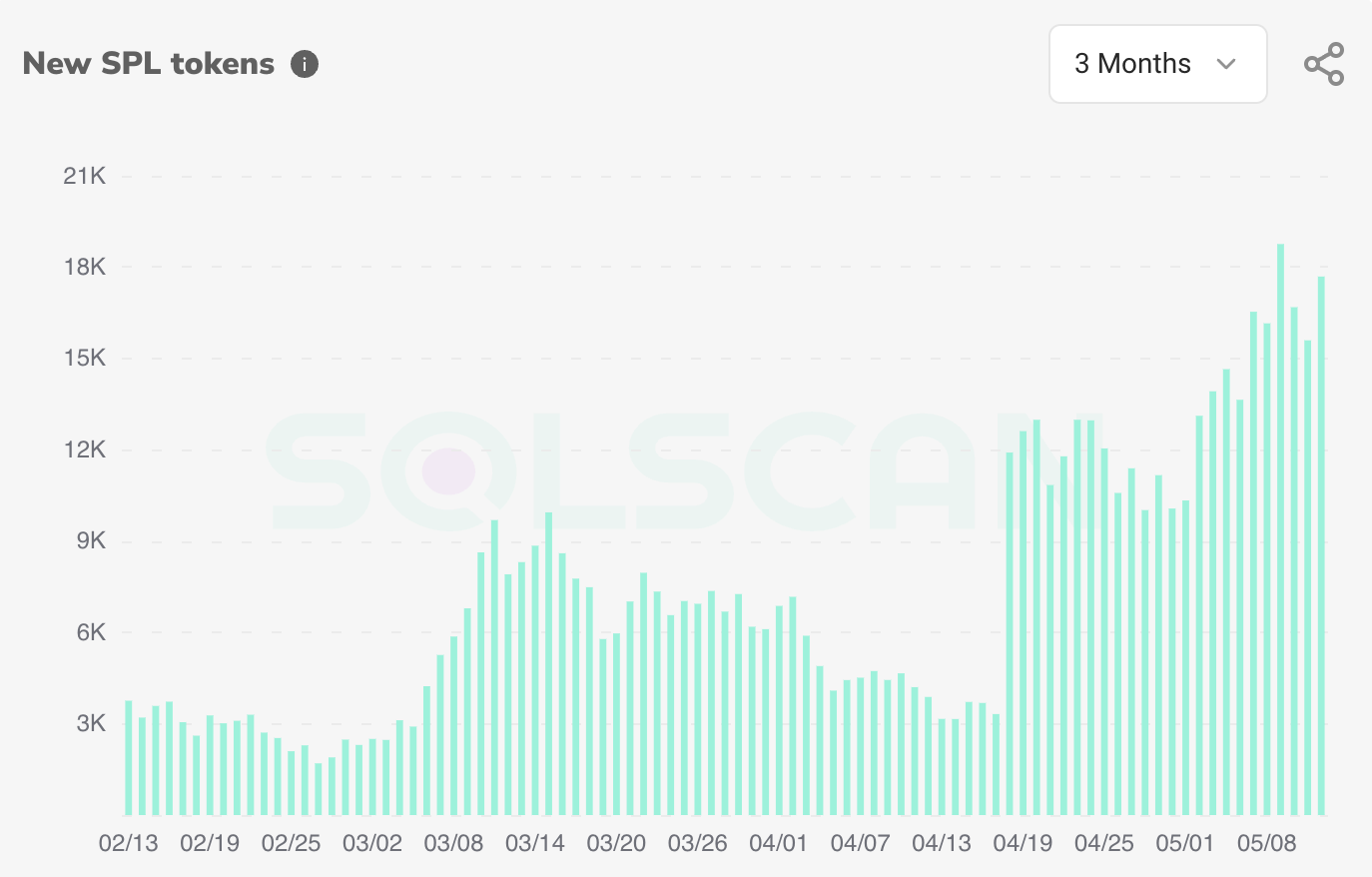 特别是在 Solana 上,过去几周每天都有超过 1 万个新代币被创建。