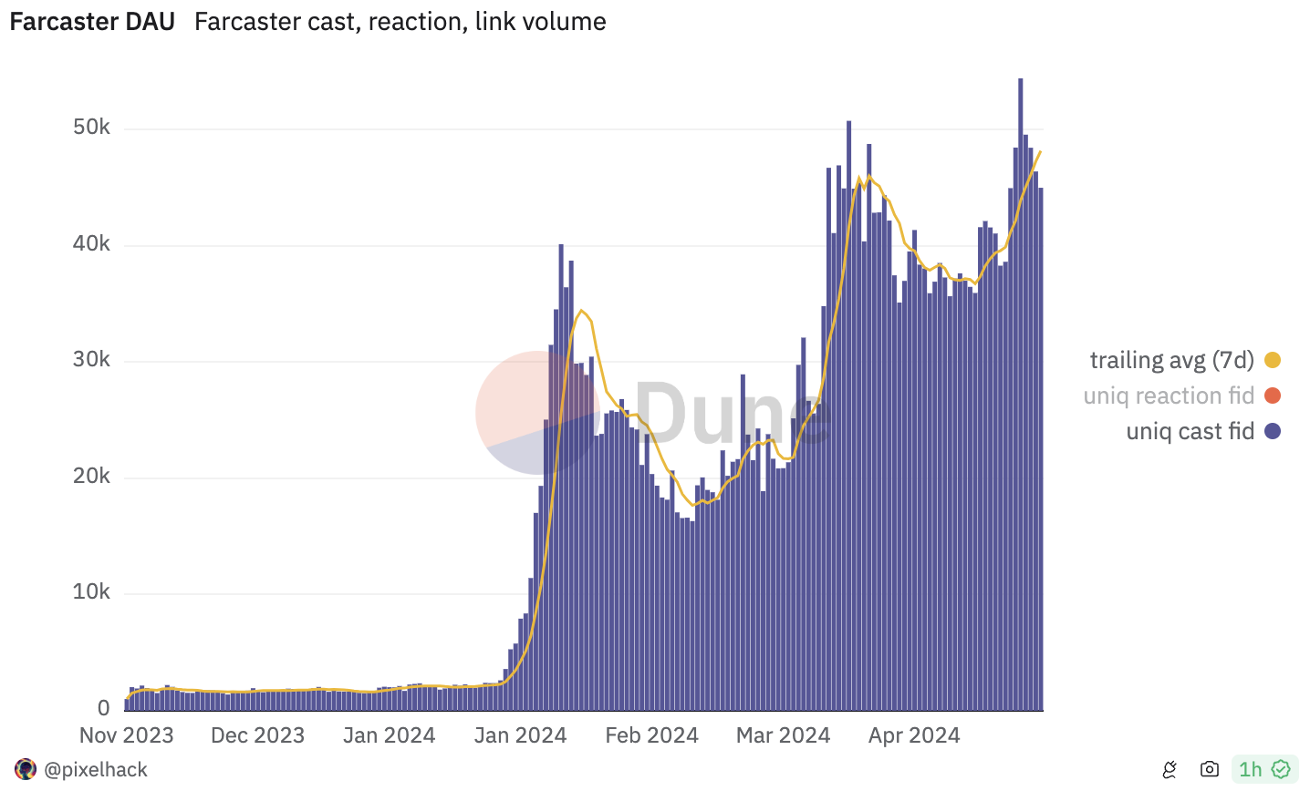 Farcaster 是一个建立在开放协议基础上的社交网络,目前已经有了显著的增长,转折点发生在 1 月底,frames(类似小程序组件)发布之际,用户可以直接利用它在 Farcaster 客户端的社交信息流中分享和互动内容。