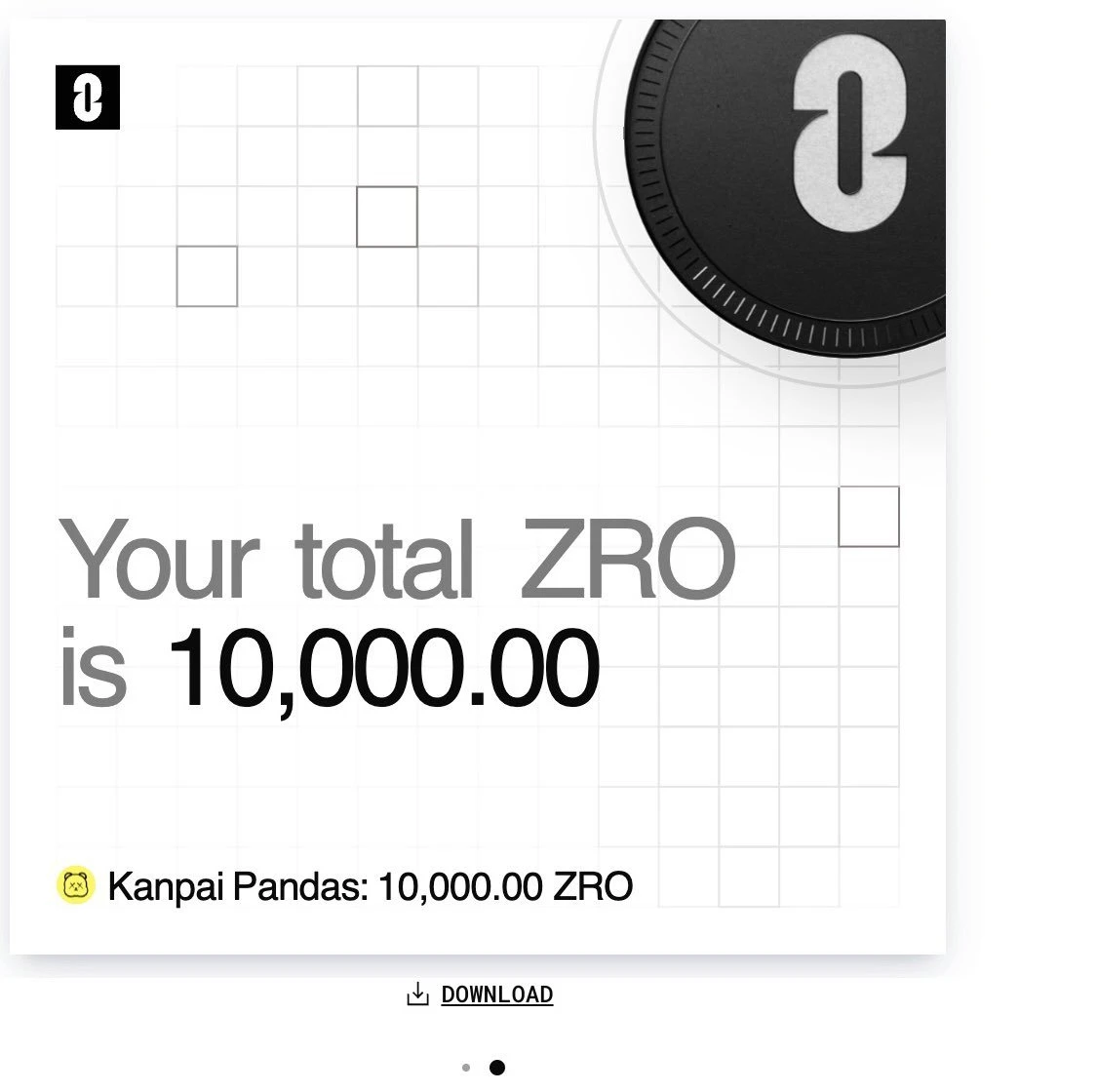 查询链接发布后不久,社区中开始流传一张查询结果图片,图片显示某用户凭借 Kanpai Pandas 这一 NFT 获得了 1 万枚 ZRO 空投,但社区传播内容中未披露具体地址。