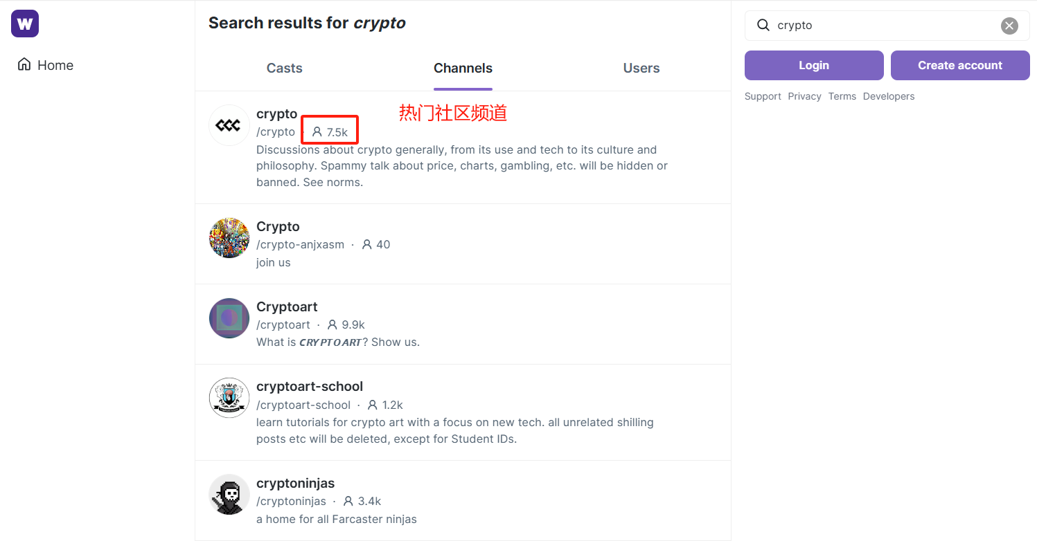 想要帖子获得更多曝光量,可以选择在热门社区频道内发帖,如/crypto、/build、/base 还有之前给社区活跃成员巨额空投的 /degen 等,通过搜索即可进入频道。