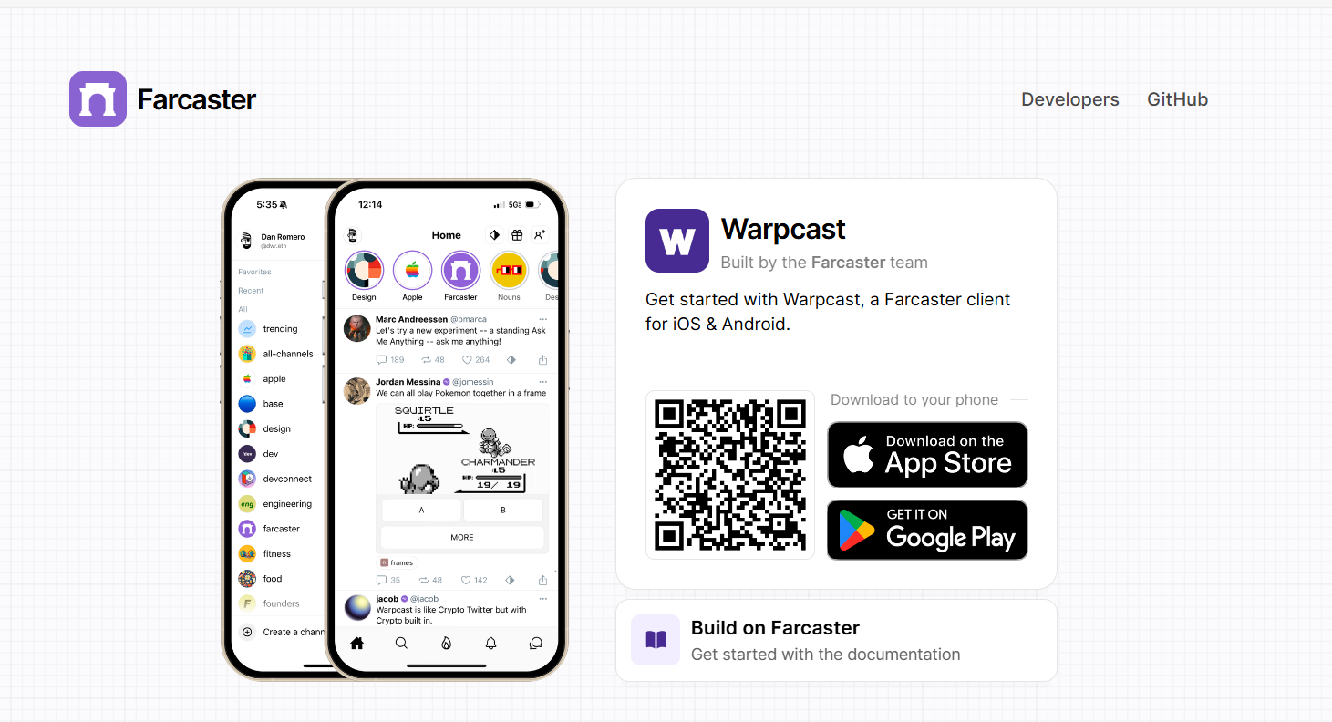 Warpcast 当前只能从 Farcaster 官网 或手机应用商店下载之后通过手机端注册。