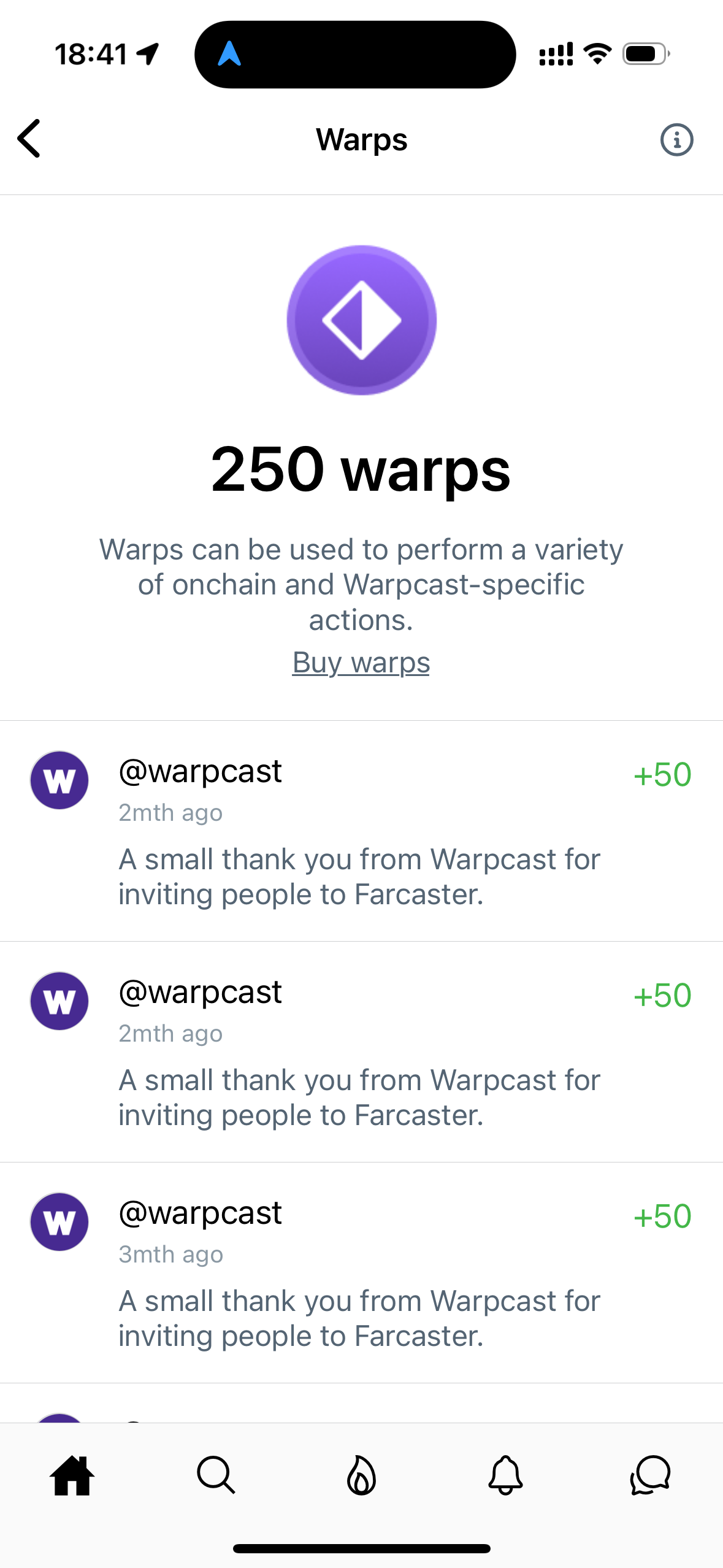 需要注意的是 $Warps 没有上链,只是平台内中心化代币,且 Warpcast 官方也建议积极花掉手里的 $Warps 不要盲目去囤。