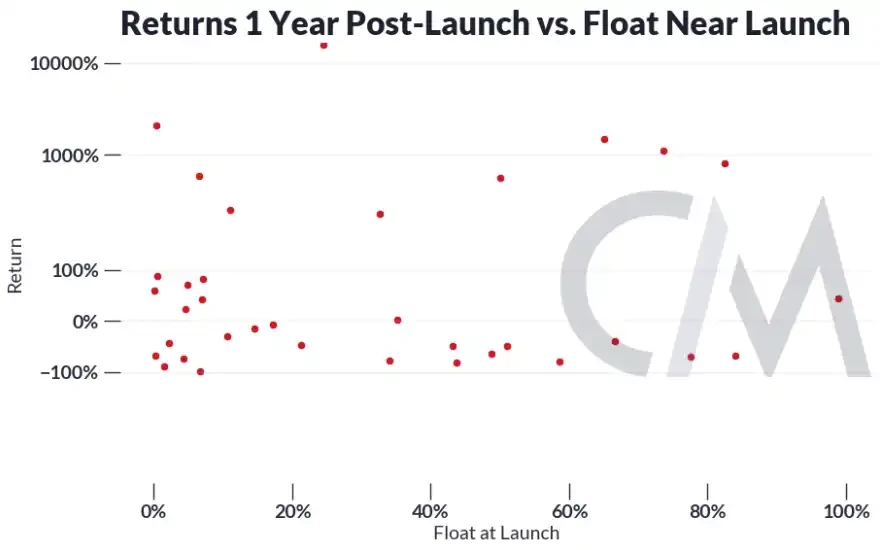 我们发现,一般来说,发行时的流通量对发行后 1 年的代币升值没有显著影响。这与我们之前的研究结果相当一致,这表明流通量的突然冲击不会对价格产生一致的方向性影响。