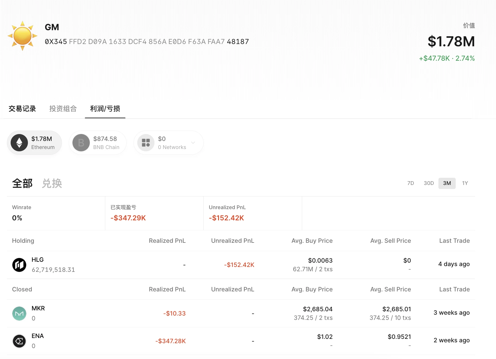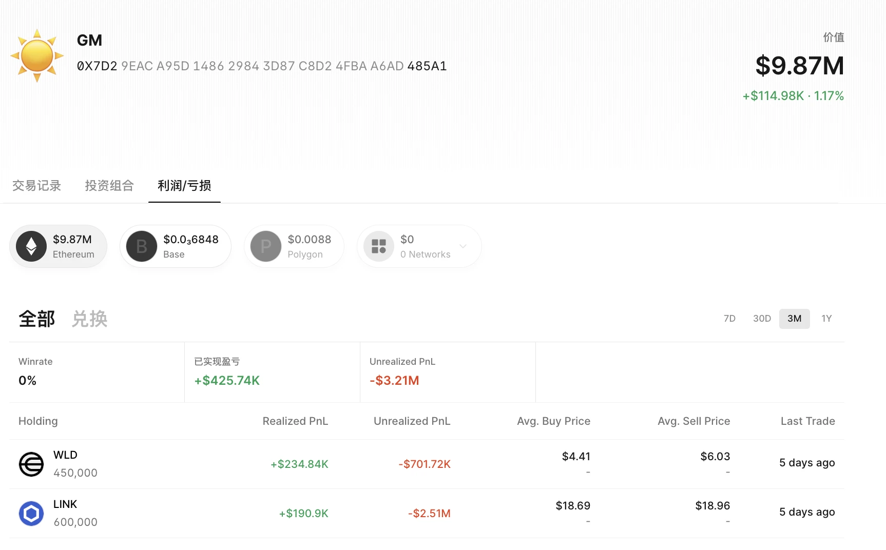 LINK & WLD:建仓 354 万美元, 3 个月累计盈利 42.5 万美元