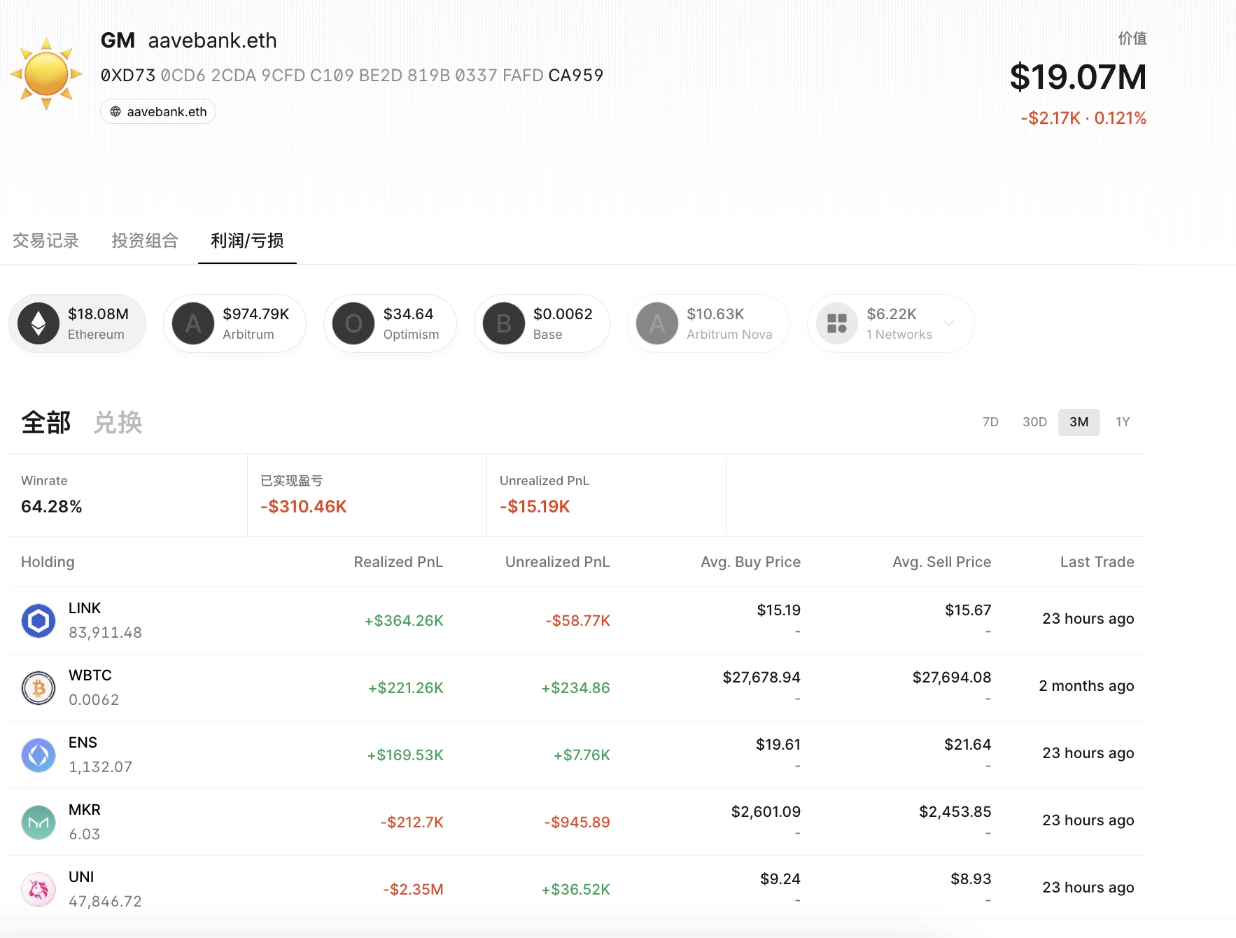 知名巨鲸 aavebank.eth 建仓多币种,预计获利 113 万美元
