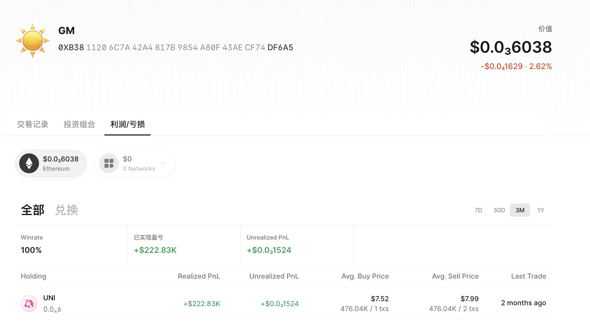 UNI:建仓 47.6 万枚,获利 38.5 万美元