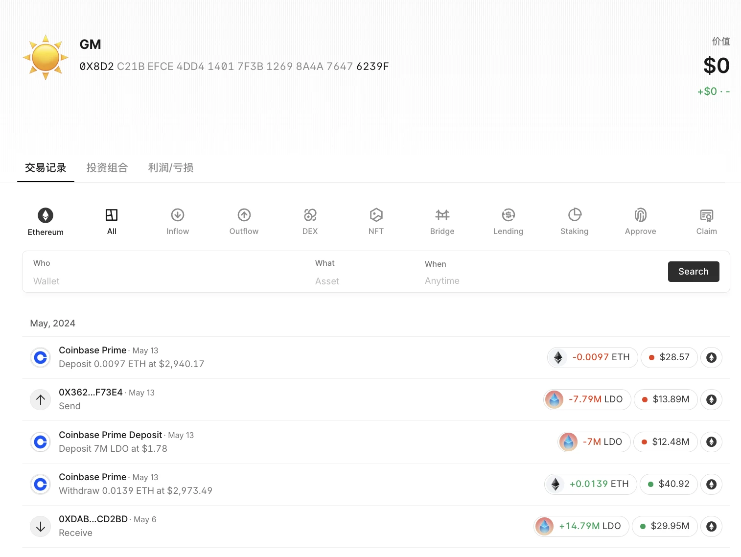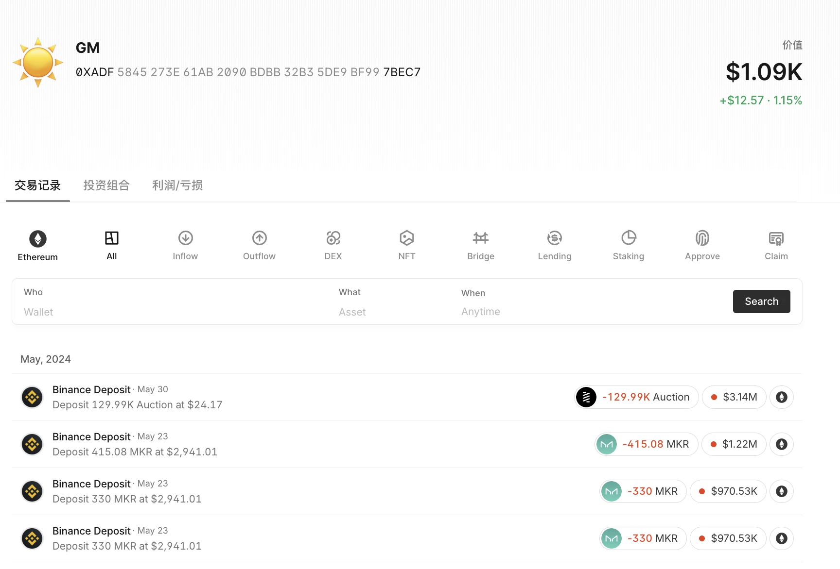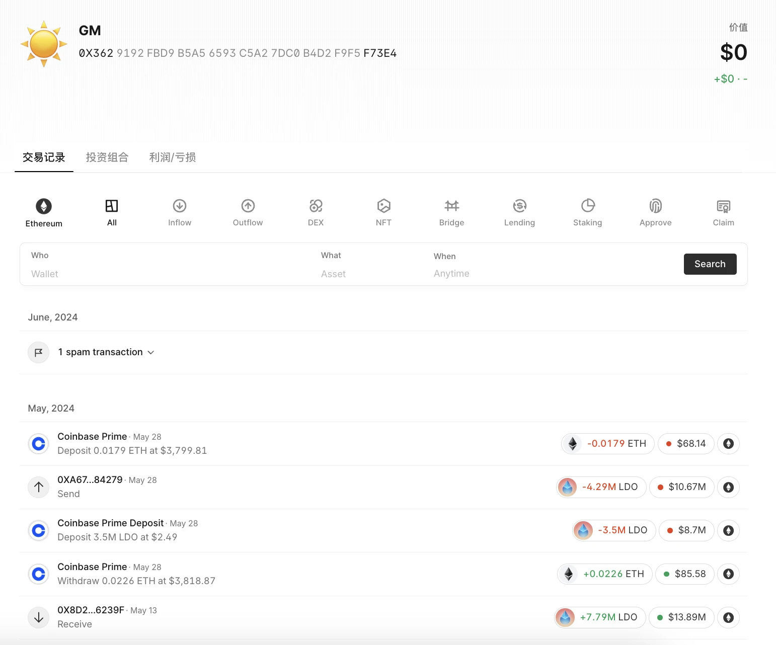 目标钱包交易记录