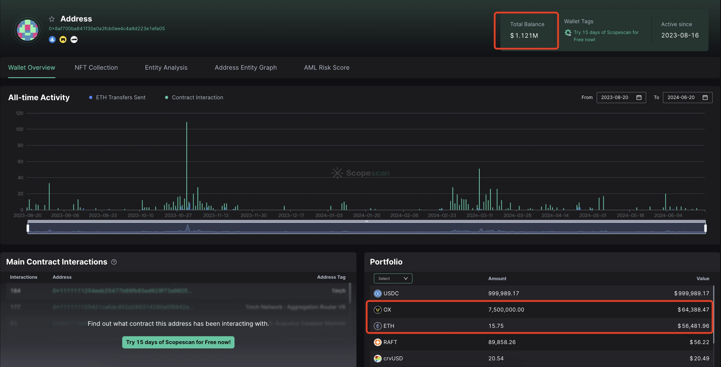 链上追踪地址: https://scan.0xscope.com/address/0xb8ba647f5867c4dfc0c454adf1aa6cf92a349819?network=eth