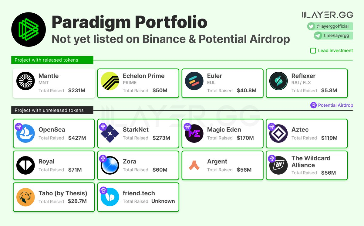 Farcaster、EigenLayer、Worldcoin、LayerZero、zkSync、Uniswap、Sui、Aptos、Optimism、Goldfinch、Ape、dYdX、Forta、Gitcoin。