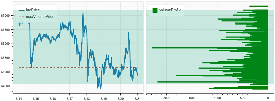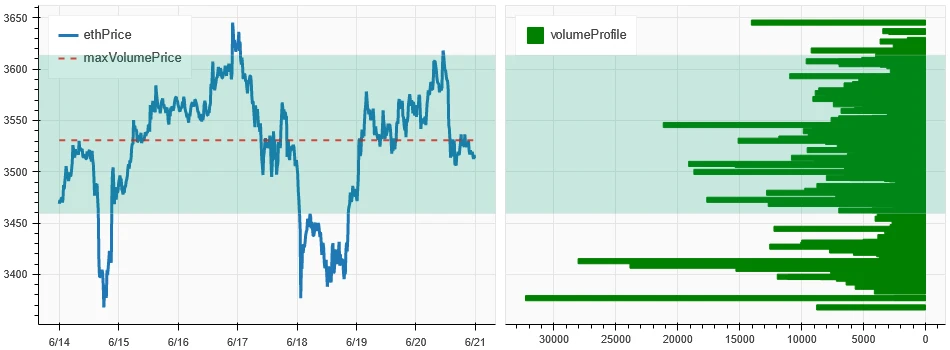 表格显示 BTC 与 ETH 过去一周中每周的密集成交区间