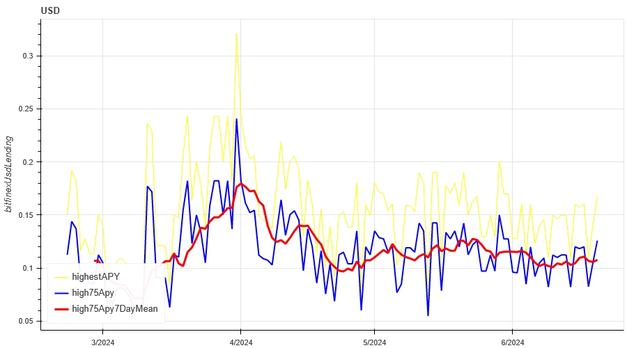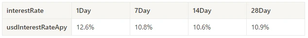 过去一周 USD 放贷年化收益平均为 10.8% ,短期利率回升至 12.6% 左右。