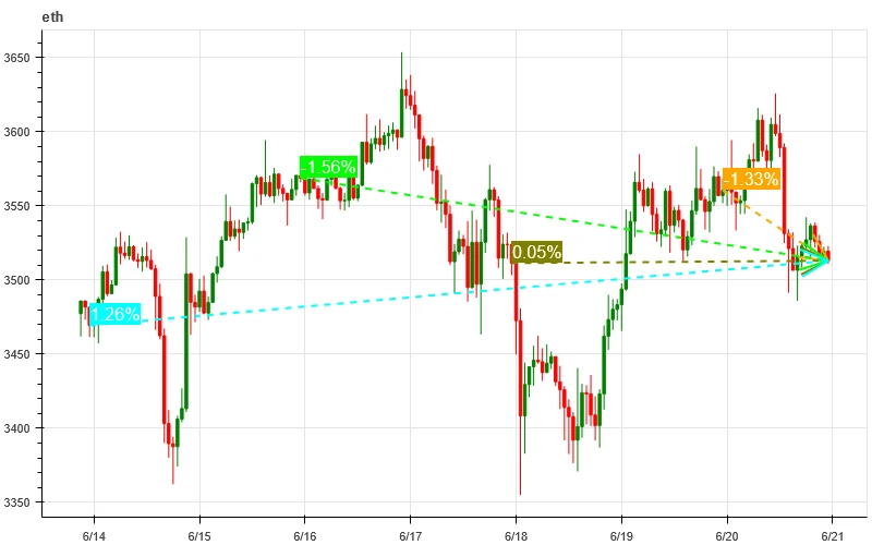 过去一周 BTC 与 ETH 在 6 月 18 日下跌时成交量最大;未平仓量 BTC 下降而 ETH 小幅上升。