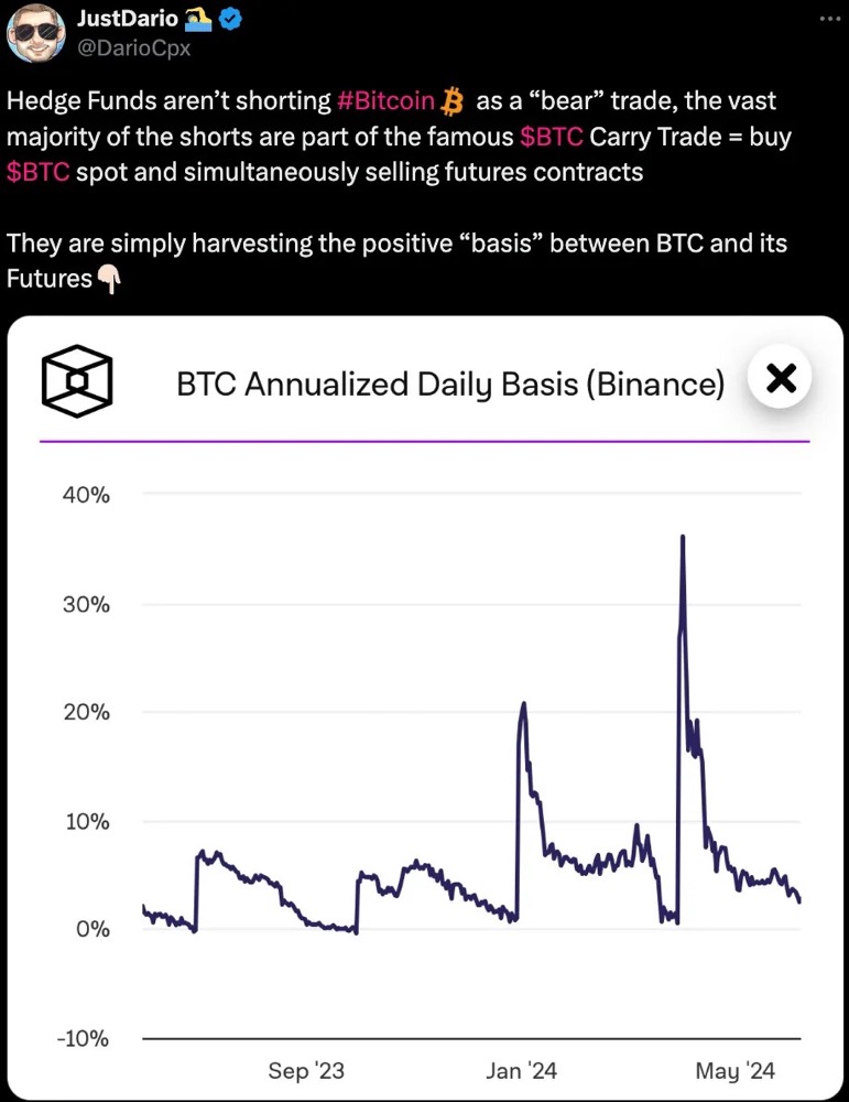 这很可怕。但也许更为轻松的答案是,机构正在通过比特币现货和期货进行套利。