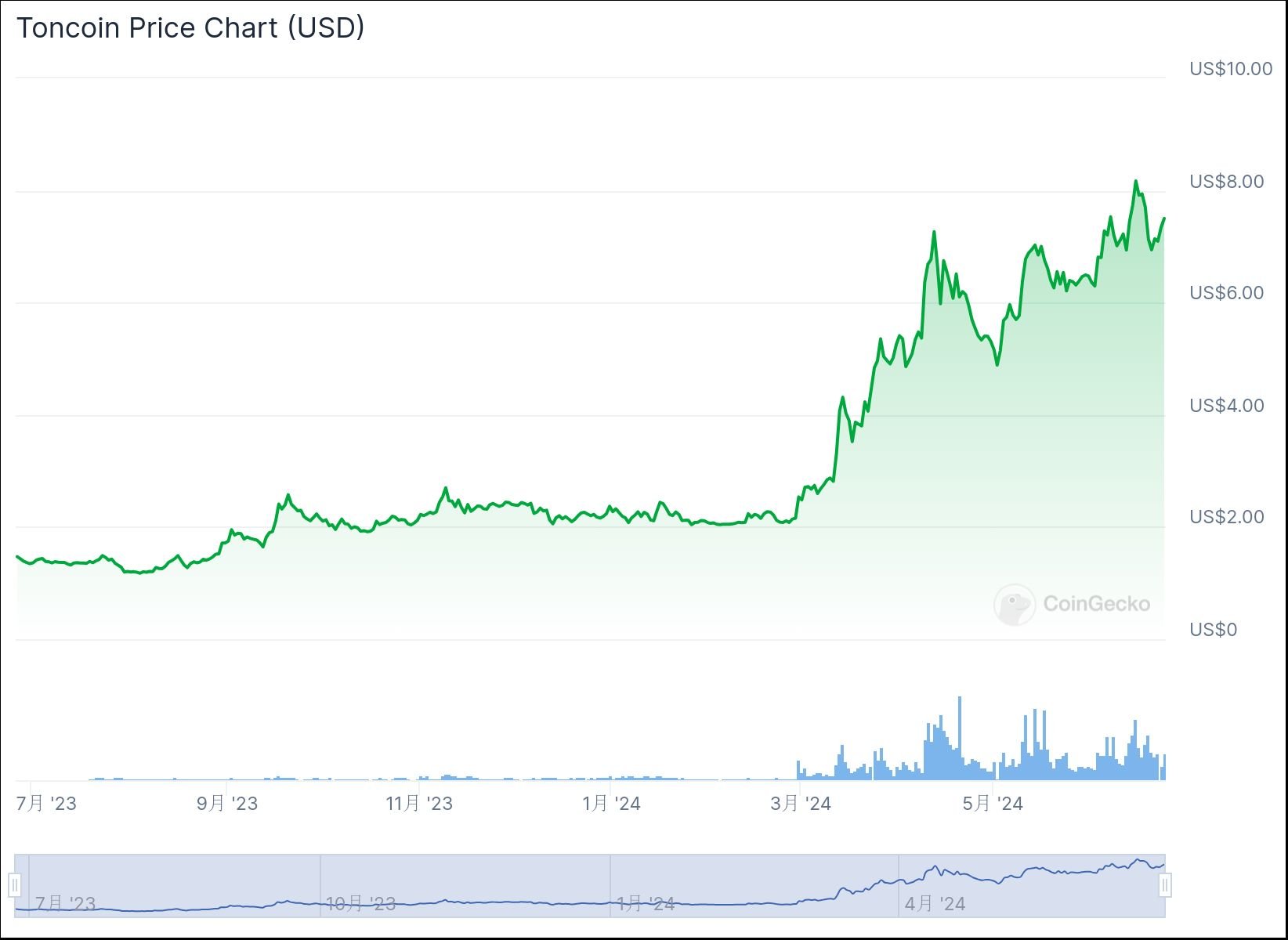 相反的是,如果 TON 价格从当前水平回落、并跌破 6.60 美元,则将完成头肩顶形态,可能会𫔭始持续走跌至 4.91 美元。