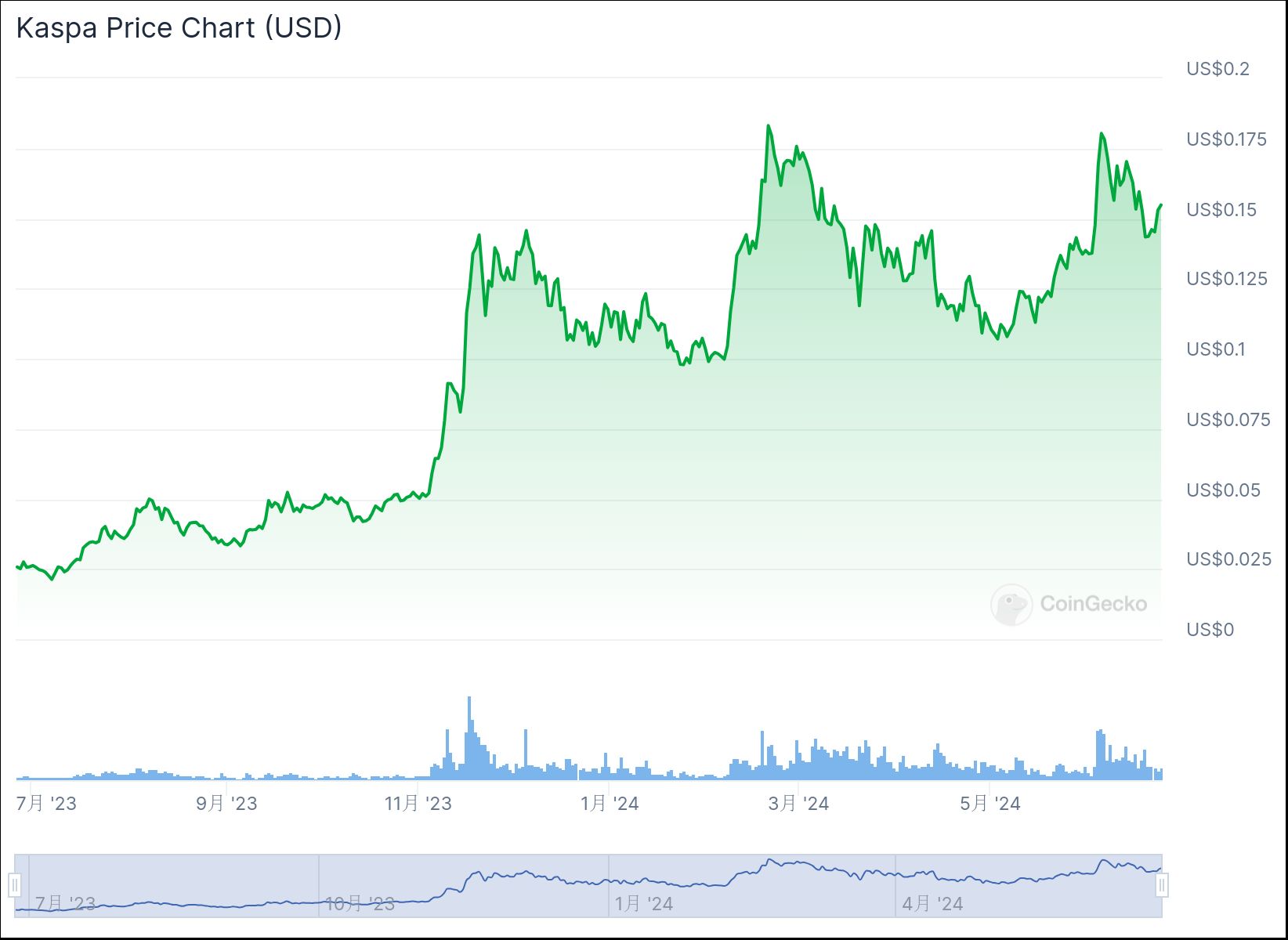Kaspa (KAS) 在过去一个月 上涨 18.2%,现报 0.1548 美元,KAS 在 18 日从 50 日均缐的 0.14 美元𫔭始反弹,并在 23 日涨至 20 日均缐的 0.15 美元上方,若𧹒方保持势头,并将价格推升至下降趋势缐上方,表明回调可能已结束。