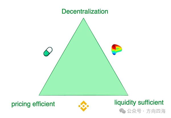 总结一下,当代的代币交易所面临着三难困境:1)充足的流动性,2)有效的定价,3)去中心化。