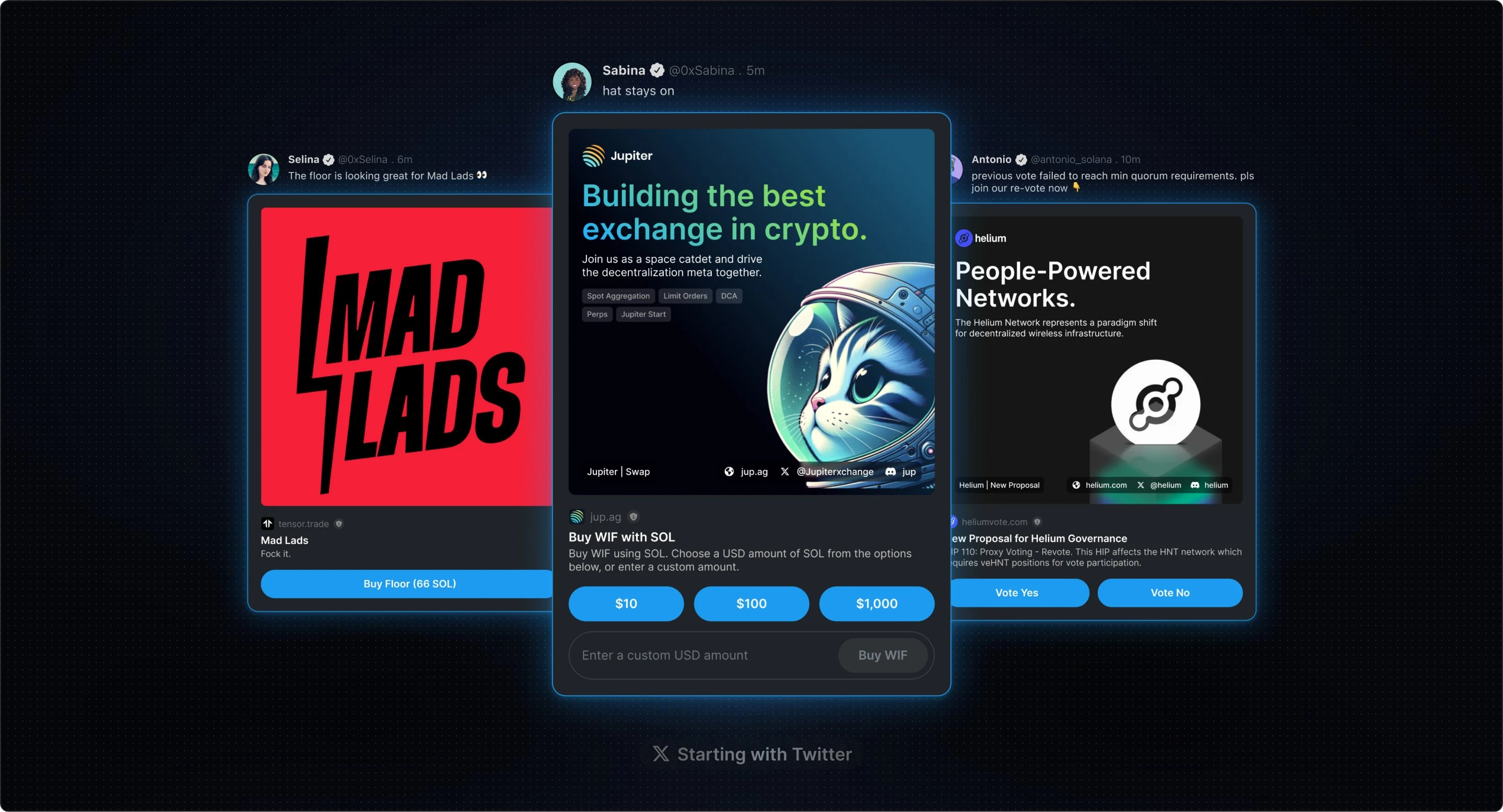 昨夜,Solana 生态一众项目在 X 平台上刷屏宣布支持 Solana 最新特性 Blinks,包括了钱包 Phantom、DEX Jupiter、NFT 平台 Tensor 等数十个项目。