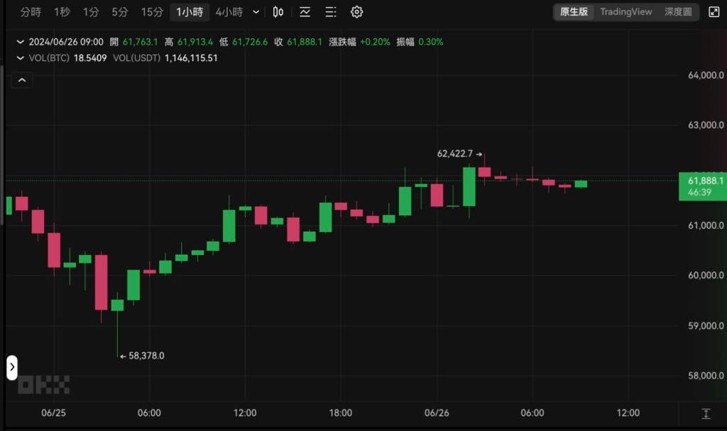 近 期加密货币市场持续疲弱,比特币甚至在昨(25)日一度跌破 6 万美元大关,插针 58,402 美元。虽然撰稿当下比特币跌有所回弹,今(26)晨三点最高触及 62,422 美元,但投资者目前对 BTC 的后市仍是戒慎恐惧。