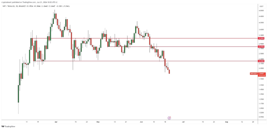 化名为 DonAlt 的分析师,他过去準确预测了市场的底部和顶部,通过逆向操作,他并不真的喜欢 Memes 。侭管他持有极端的对立观点,他仍然保持相同的看法。关于 WIF,他最近说:「它看起来糟透了。不管你怎麽说我有偏见,下跌就是下跌。」