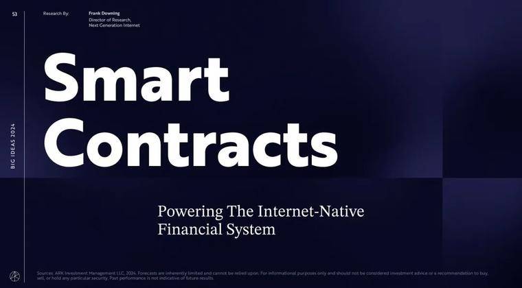 这一点对于华尔街基金的价值捕获最为直接,也是 crypto 最能借助链下世界实现 Mass Adoption 的路径,这点从 Paypal 推出稳定币之后在 Solana 上线的策略就能看出一二。 Reference: [1] ARK, Big Ideas 2023 https://research.ark-invest.com/hubfs/1_Download_Files_ARK-Invest/Big_Ideas/ARK Invest_Presentation_Big Ideas 2023_FINAL_V2.pdf [2] ARK, Big Ideas 2024 https://www.ark-invest.com/big-ideas-2024