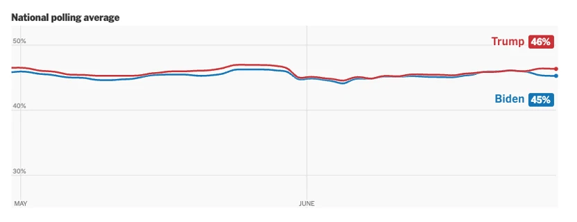 在辩论前,本次辩论的场地设置相比之前有了很大的变化。根据 CNN 官方消息, 这场持续 90 分钟的辩论期间辩论期间竞选团队不得与他们的候选人进行任何互动。考虑到今年拜登已经 81 岁高龄,特朗普已经 78 岁, 没有任何支持的环境显而易见对于两人都是巨大的挑战。