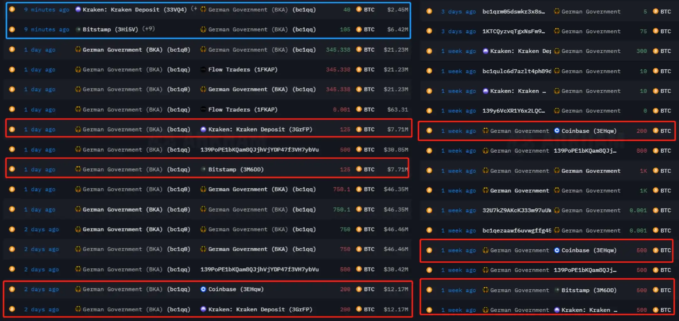 此前持仓 5 万枚 BTC,截止发稿时已在 6 月分批次出售约 4736 枚,现有 4.5 万枚。其中 6 月 25 日向 Coinbase 和 Kraken 各转入 200 枚 BTC;6 月 26 日,再次向 Coinbase、Kraken 和 Bitstamp 转移 700 枚 BTC,不过 6 月 27 日又再次转回链上地址 145 枚 BTC。