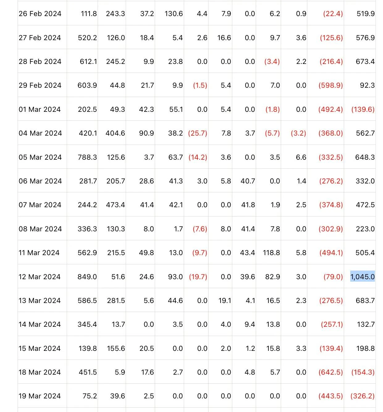 比特币 ETF 流入量达到 10.45 亿美元的峰值,然后急剧放缓。