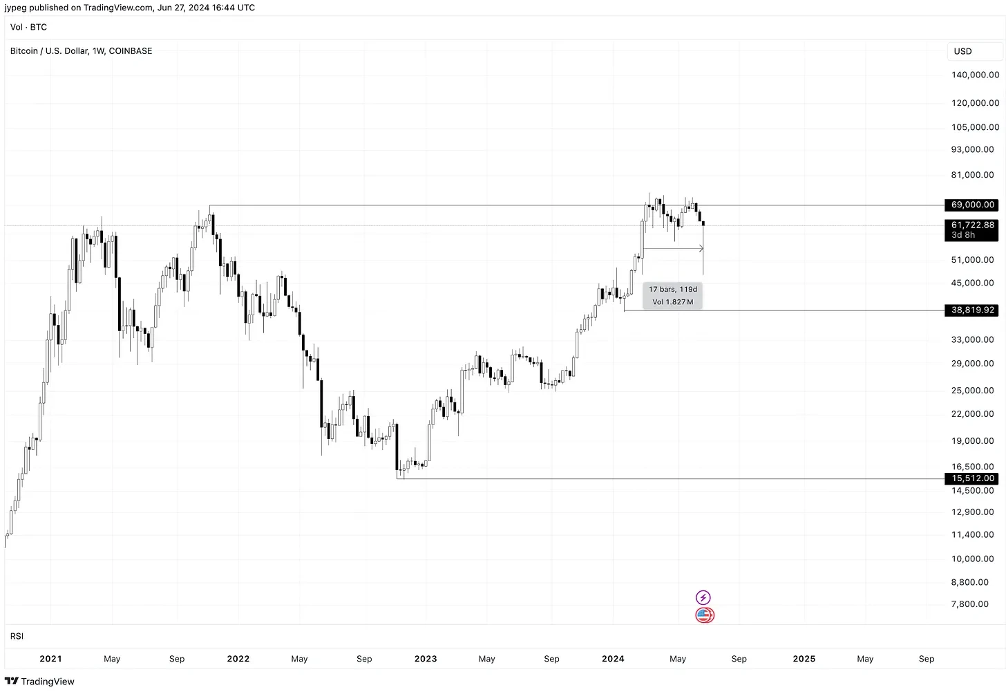 比特币已经在 60, 000 - 70, 000 美元区间徘徊近 4 个月。