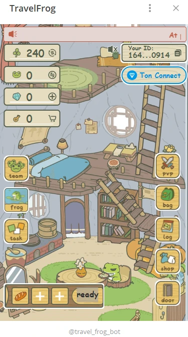 Travel Frog 是 Telegram 上的养成类游戏小程式,目前游戏内测期间活跃使用者数超 4 万,电报群订阅使用者数超 2.7 万。与 Web2 曾经流行的养成游戏《旅行青蛙》玩法类似,Travel Frog 玩家需要为青蛙準备午餐物品的旅行包,还需要为它收档案,招待朋友等,游戏中赚取的三叶草后期可兑换成 TON。