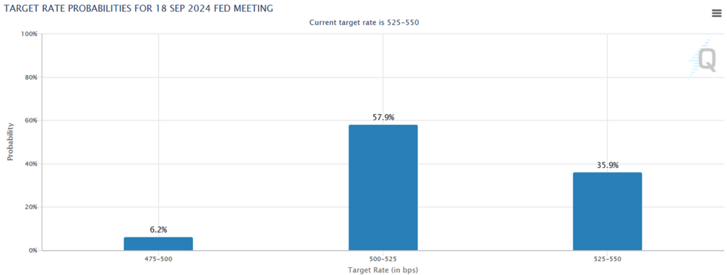 - 市场目前认为九月降息的机率约为 65%,并且认为年底之前会进行一共近 2 码的降息。