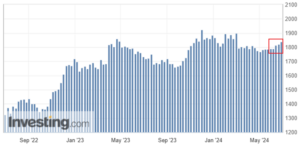 周四公布资料,美国上周初请失业金人数有所下降,但 6 月中旬续请失业金人数跃升至两个月半以来的最高水平,暗示在经济增长放缓的情况下,劳动力市场状况正在鬆动。