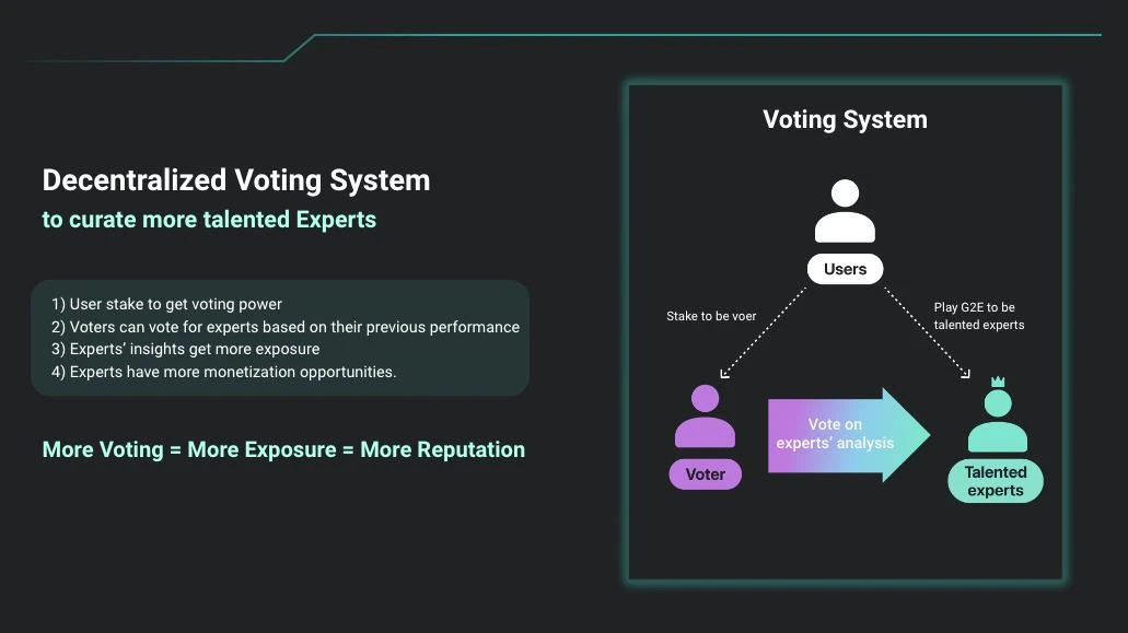 用户通过充分参与 G2E 达到专业级用户资格的胜率后,能够通过选举系统获得用户选票以增强其曝光度和影响力,并能够通过代币系统得到变现奖励。