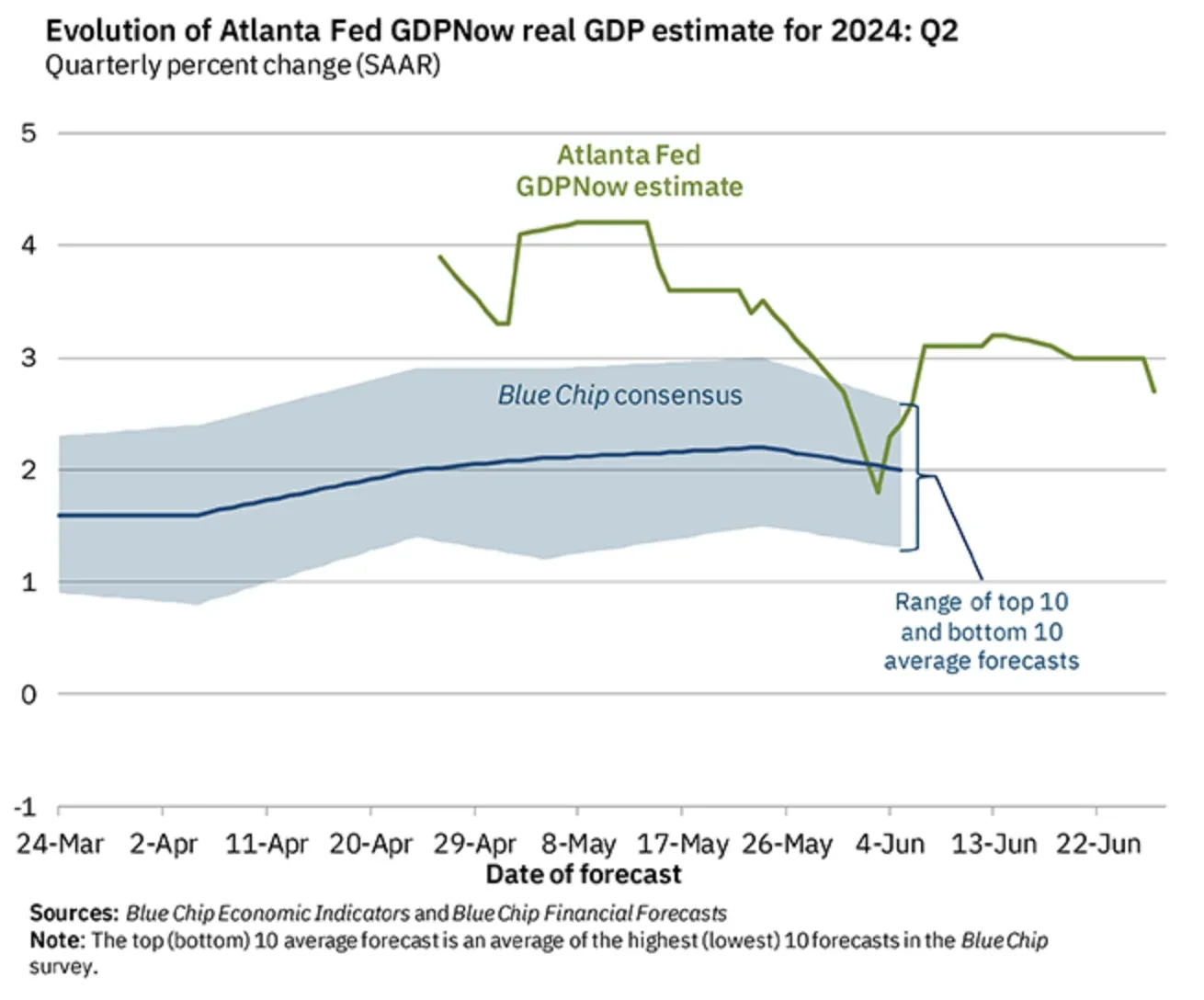 亚特兰大联储预计 2024 年第三季度的实际 GDP 增长率为惊人的 2.7% 。