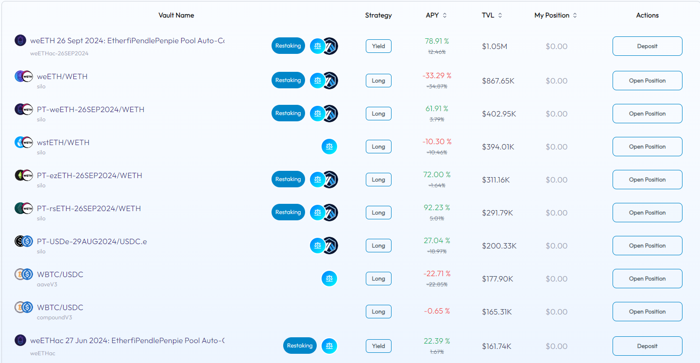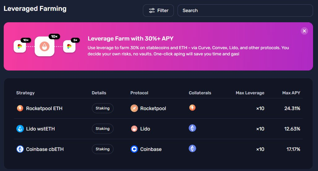 DeFi 协议 Contango 有大量 ARB 流向杠杆 ETH 头寸。相比之下,这些可以处理大量的 ETH。收益率从 20-30% 不等,一些策略原则上可以处理超过 200 万美元。