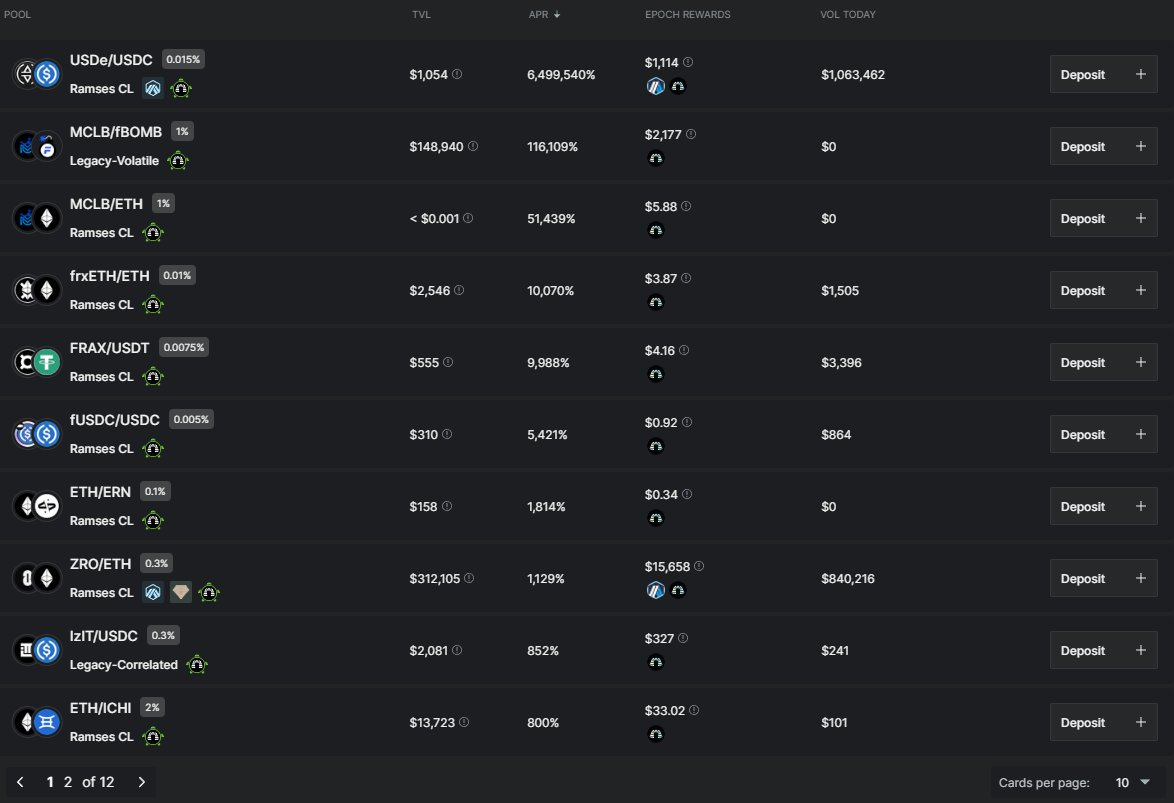 Ramses 和 Trader Joes 很像,喜欢宣传单一 tick(single-tick)流动性的 APR。