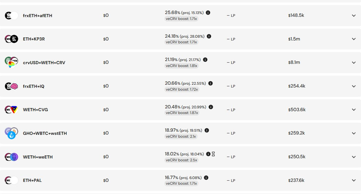 Curve 和 Convex 使用 ARB 奖励来补贴一些有趣的池。同样,作者喜欢 ETH, BTC 或稳定币池。