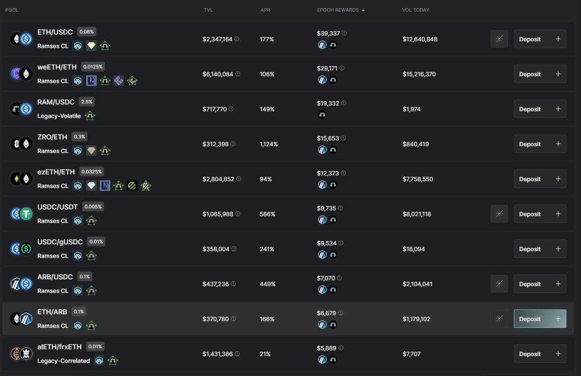 作者喜欢点击“EPOCH REWARDS”排序,查看所有 ARB 激励都在哪里。