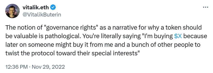 图表 2 :Vitalik Buterin 对治理代币的评论