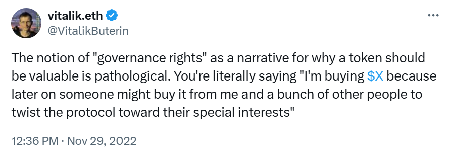 图表 2:Vitalik Buterin 对治理代币的评论