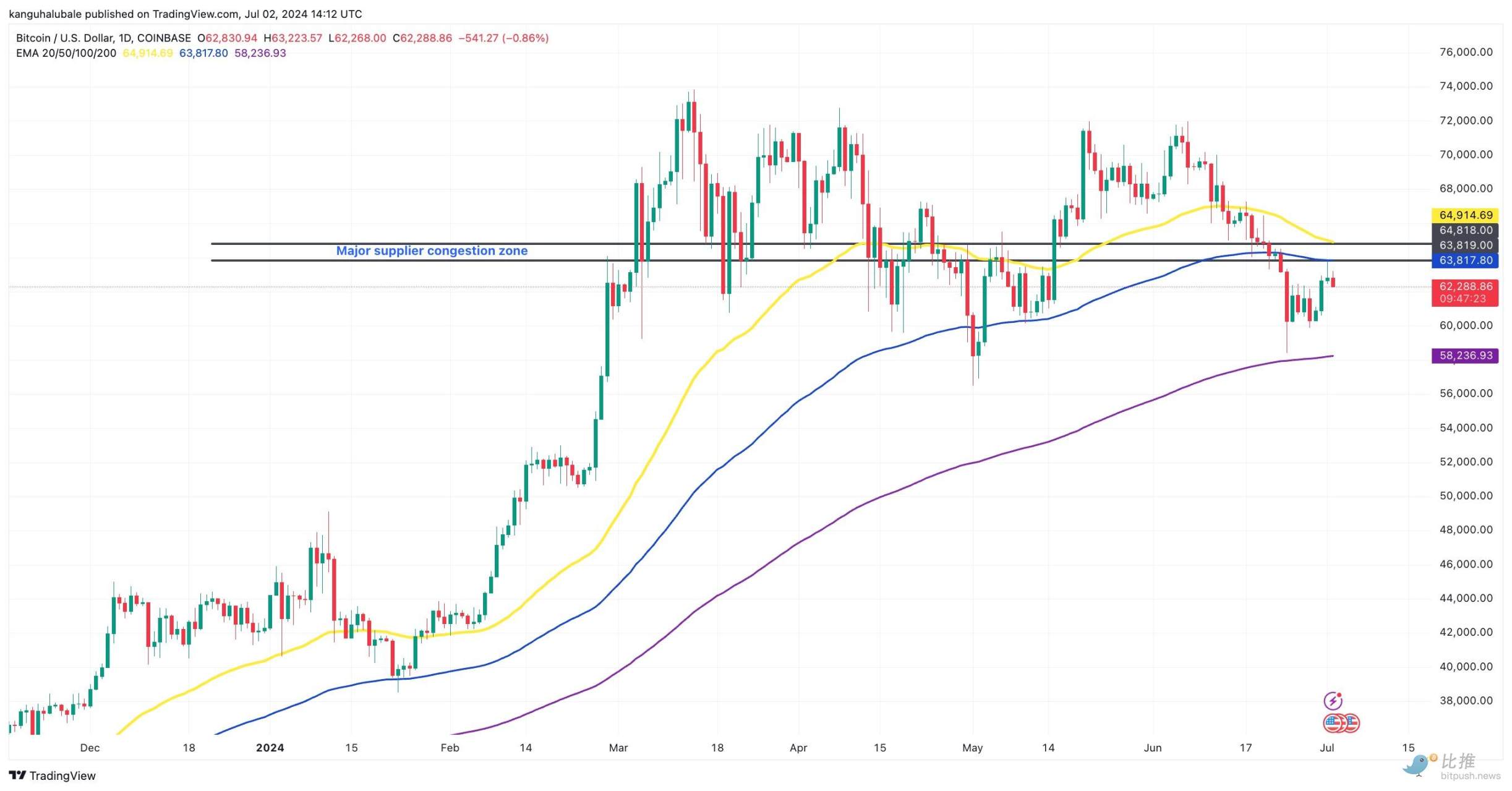 与此同时,加密货币公司 Apollo 创始人 Thomas Fahrer 对比特币突破 65, 000 美元更为乐观。他在 7 月 2 日的 X 帖子中宣称:「 9.4 亿美元的 Bitcoin 空头头寸将在 65, 000 美元时被清算。比特币的第一条规则就是不要做空,资金会流入,做空者会受到惩罚。」