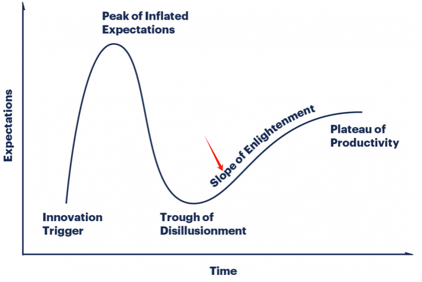 正如众多极具革命性的产品的发展历程,Defi 在出现后同样经历了 2020 年元年的叙事发酵, 21 年资产价格的快速泡沫化, 22 年熊市泡沫破裂后的幻灭阶段,目前随着产品 PMF 的充分验证,正在从叙事幻灭的低谷走出来,用实际业务数据构建其内在价值。