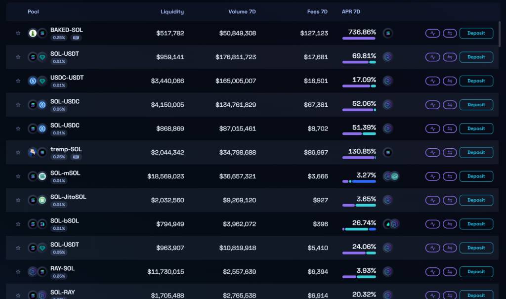 我们同样会重点分析 Raydium 的交易量、手续费,而 Raydium 比 Uniswap 更好的一点在于它很早就开始了协议收费,拥有很好的协议现金流,因此我们把 Raydium 的协议收入也作为重点考察项。