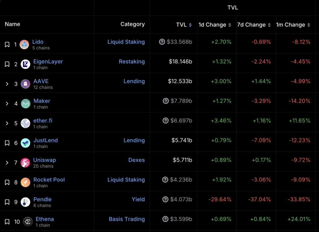 新来者的竞争。Eigenlayer 发布以来,Lido 的市场份额就处于下降态势。任何具备充分代币营销预算的新项目,都会成为 Lido 这类具备领先优势但是代币已经接近全流通项目的竞争对手。