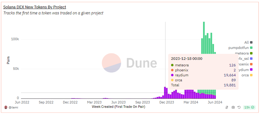 而 Solana 作为本轮牛市最大的 Meme 孵化基地,自从今年 11 月以来每天都有几百乃至上万的新 Meme 诞生,Meme 也是本轮 Solana 生态繁荣核心驱动因素,成为了 Raydium 业务起飞的助燃剂。