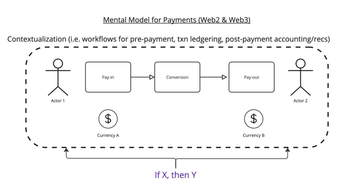 想象一下,支付的本质是将 $x 从一个地方传送到 $y,过程中需要遵循某些条件。