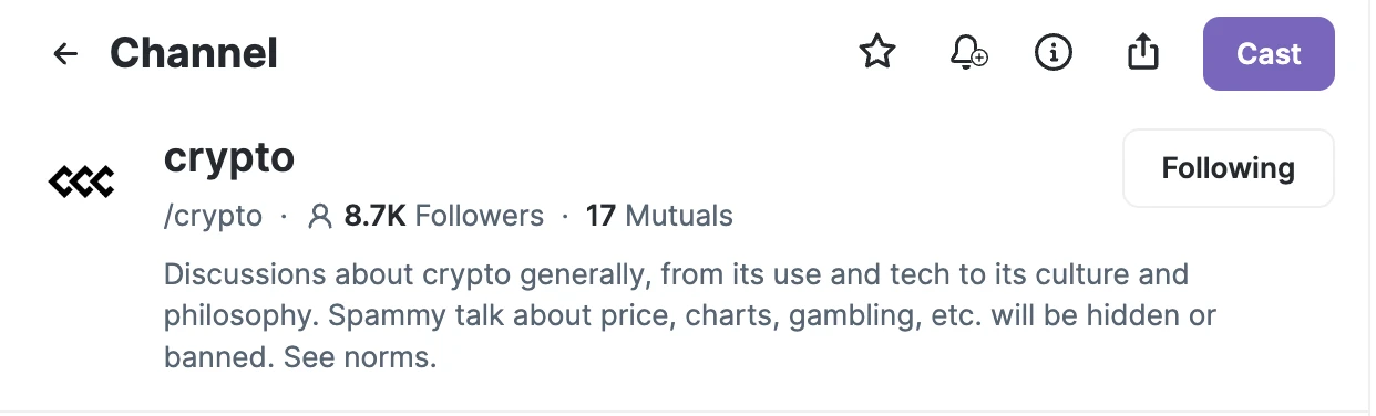 所以,Farcaster 协议及更多本地化客户端的增长空间仍具备十足的想象力。话不多说,以下是个人认为的 Farcaster 生态 10 大优质频道,适合进行“内容 Farming”的同时,也可以通过输出优质内容建立自己的“行业 Reputation”,供大家参考。